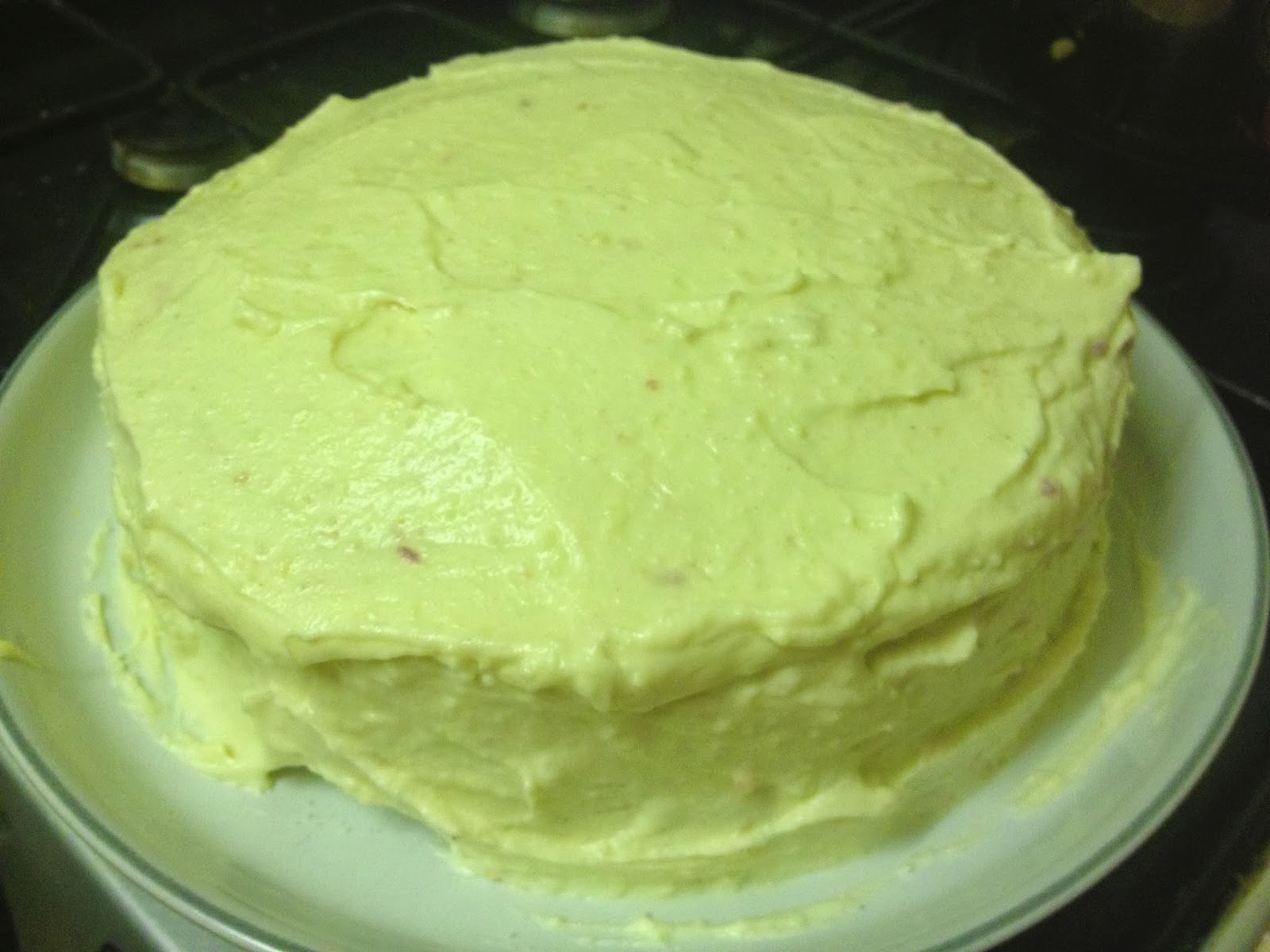 After you are done with applying white paste all around the cake, it should look like this: